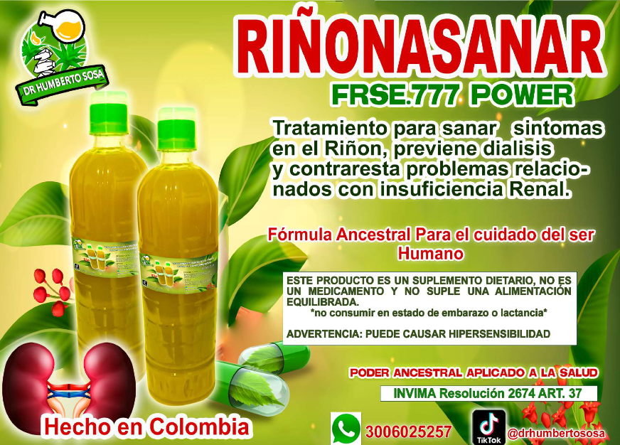 Tratamiento elaborado a base de plantas y extractos del centro de la AMAZONIA COLOMBIANA. Tratamiento para sanar enfermedades e infecciones en riñones, síntomas renales o nefropatías que afectan al correcto funcionamiento de los riñones